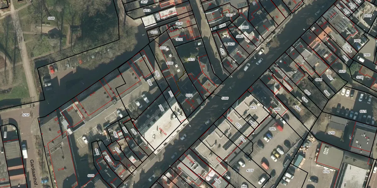 Het adres is gelegen op perceel 8191 in de sectie Q en de kadastrale gemeente Tilburg. De kadastrale aanduiding is aldus TBG01-Q-8191. Het perceel is 196 m² groot. Dat is kleiner dan de gemiddelde perceeloppervlakte in Tilburg, dat op 1264,36 m² ligt. Het kleinste perceel in de kadastrale gemeente is 0 m² groot. De grootste perceeloppervlakte is 87,4 ha. Op het perceel zijn 11 adressen aanwezig. In de Basisregistratie Kadaster (BRK) werden de grenzen van het perceel geregistreerd op 20-03-2025.