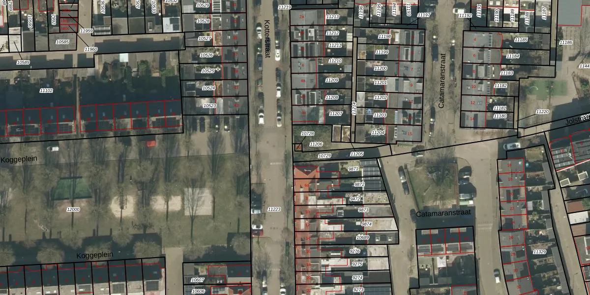 Het perceel waarop Kotterstraat 4-d staat heeft een oppervlakte van 6 m². Dit is een klein perceel. De perceeloppervlakte wordt geregistreerd door het Kadaster. Gedetailleerde informatie over de maten van dit perceel kunt u vinden in het rapport Kadastrale kaart met maatvoering van Kotterstraat 4-d.