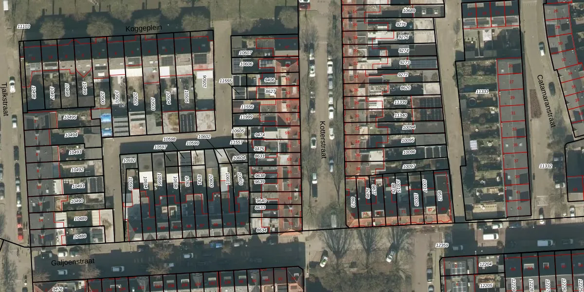 Het perceel waarop Kotterstraat 61 staat heeft een oppervlakte van 81 m². Dit is een klein perceel. De perceeloppervlakte wordt geregistreerd door het Kadaster. Gedetailleerde informatie over de maten van dit perceel kunt u vinden in het rapport Kadastrale kaart met maatvoering van Kotterstraat 61.