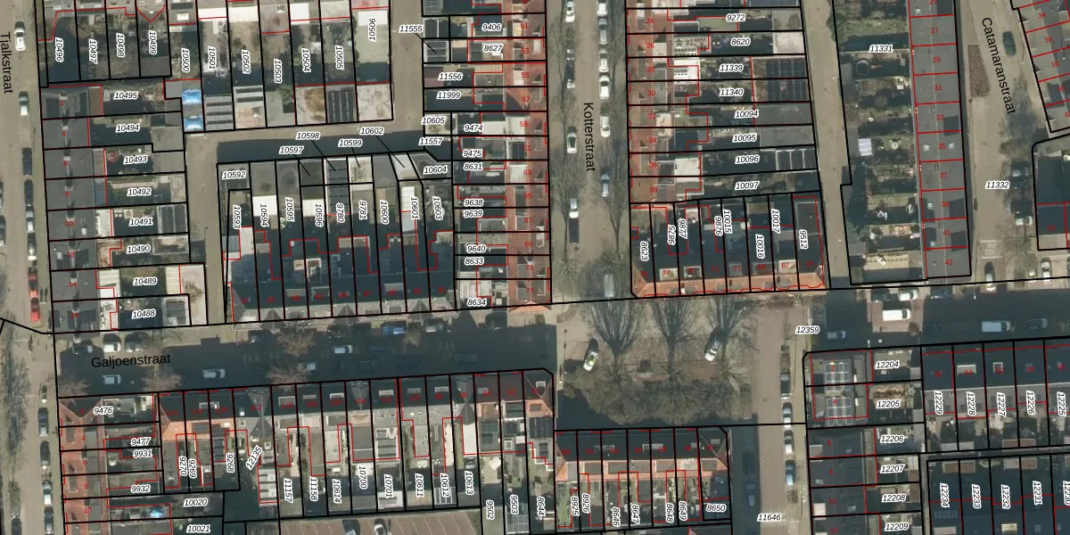 Het perceel waarop Kotterstraat 71 staat heeft een oppervlakte van 81 m². Dit is een klein perceel. De perceeloppervlakte wordt geregistreerd door het Kadaster. Gedetailleerde informatie over de maten van dit perceel kunt u vinden in het rapport Kadastrale kaart met maatvoering van Kotterstraat 71.