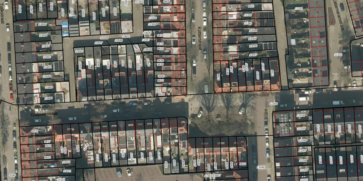 Het perceel waarop Kotterstraat 73 staat heeft een oppervlakte van 92 m². Dit is een klein perceel. De perceeloppervlakte wordt geregistreerd door het Kadaster. Gedetailleerde informatie over de maten van dit perceel kunt u vinden in het rapport Kadastrale kaart met maatvoering van Kotterstraat 73.