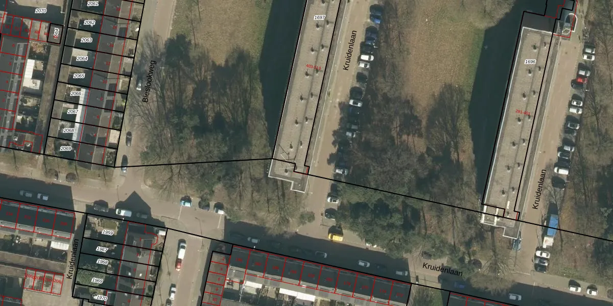 Kruidenlaan 403 is gelegen op kadastraal perceel TBG01AD1697. Deze kadastrale aanduiding is uniek en wordt gebruikt door het Kadaster om eigendomsrechten en andere zakelijke rechten vast te leggen. Het perceel maakt onderdeel uit van de kadastrale gemeente Tilburg.