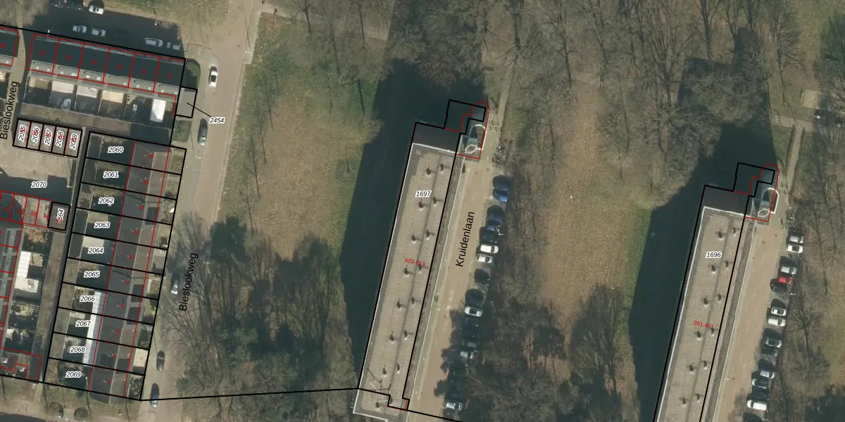 Kruidenlaan 461 is gelegen op kadastraal perceel TBG01AD1697. Deze kadastrale aanduiding is uniek en wordt gebruikt door het Kadaster om eigendomsrechten en andere zakelijke rechten vast te leggen. Het perceel maakt onderdeel uit van de kadastrale gemeente Tilburg.