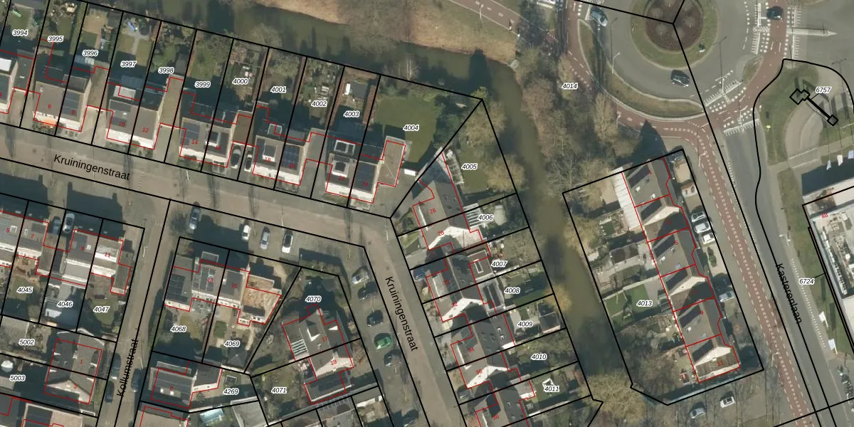 Het perceel waarop Kruiningenstraat 26 staat heeft een oppervlakte van 423 m². Dit is een groot perceel. De perceeloppervlakte wordt geregistreerd door het Kadaster. Gedetailleerde informatie over de maten van dit perceel kunt u vinden in het rapport Kadastrale kaart met maatvoering van Kruiningenstraat 26.