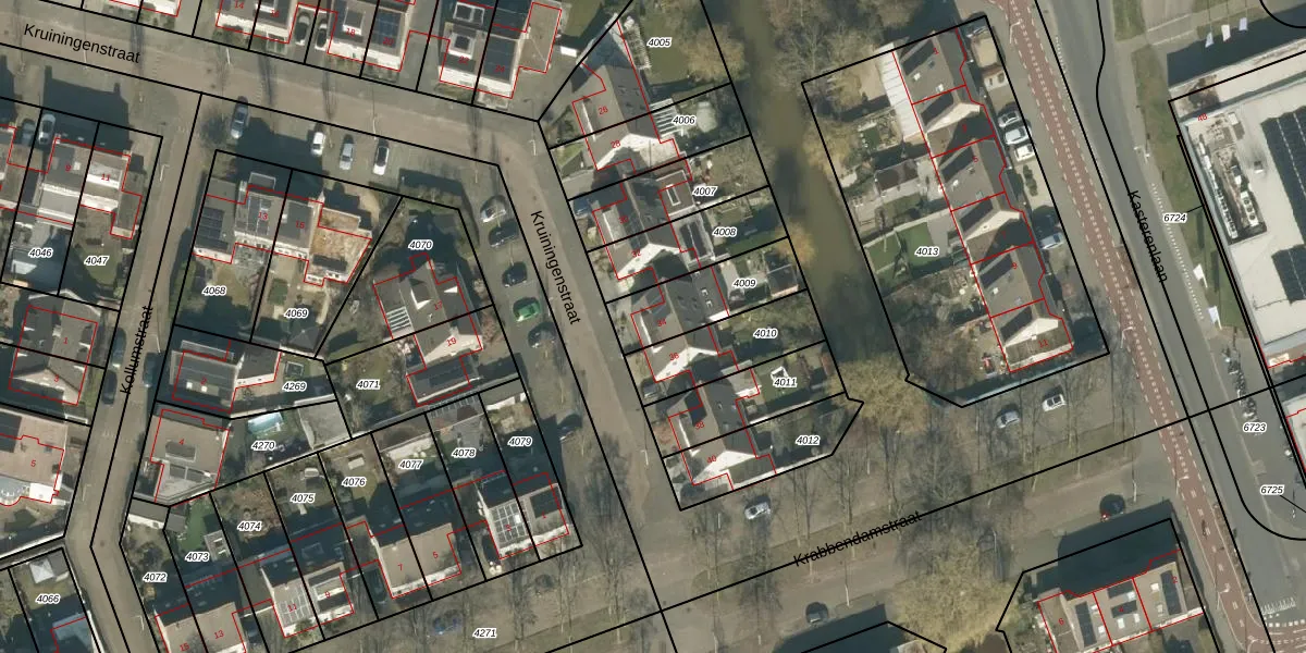 Kruiningenstraat 34 is gelegen op kadastraal perceel TBG01AF4009. Deze kadastrale aanduiding is uniek en wordt gebruikt door het Kadaster om eigendomsrechten en andere zakelijke rechten vast te leggen. Het perceel maakt onderdeel uit van de kadastrale gemeente Tilburg.