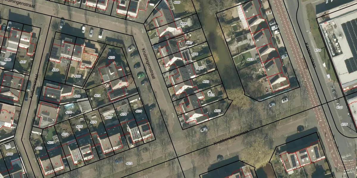 Kruiningenstraat 36 is gelegen op kadastraal perceel TBG01AF4010. Deze kadastrale aanduiding is uniek en wordt gebruikt door het Kadaster om eigendomsrechten en andere zakelijke rechten vast te leggen. Het perceel maakt onderdeel uit van de kadastrale gemeente Tilburg.