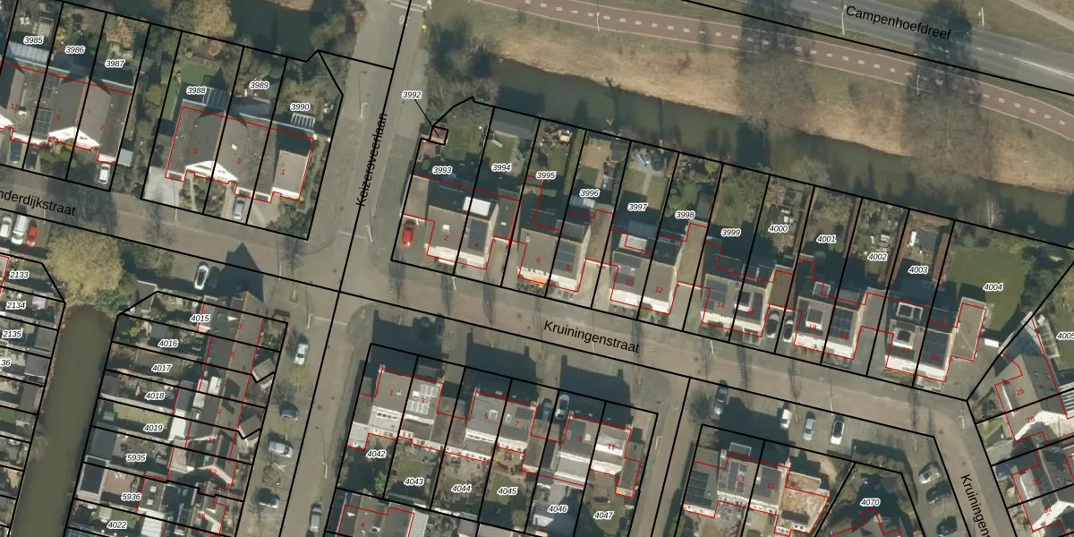 Kruiningenstraat 6 is gelegen op kadastraal perceel TBG01AF3995. Deze kadastrale aanduiding is uniek en wordt gebruikt door het Kadaster om eigendomsrechten en andere zakelijke rechten vast te leggen. Het perceel maakt onderdeel uit van de kadastrale gemeente Tilburg.