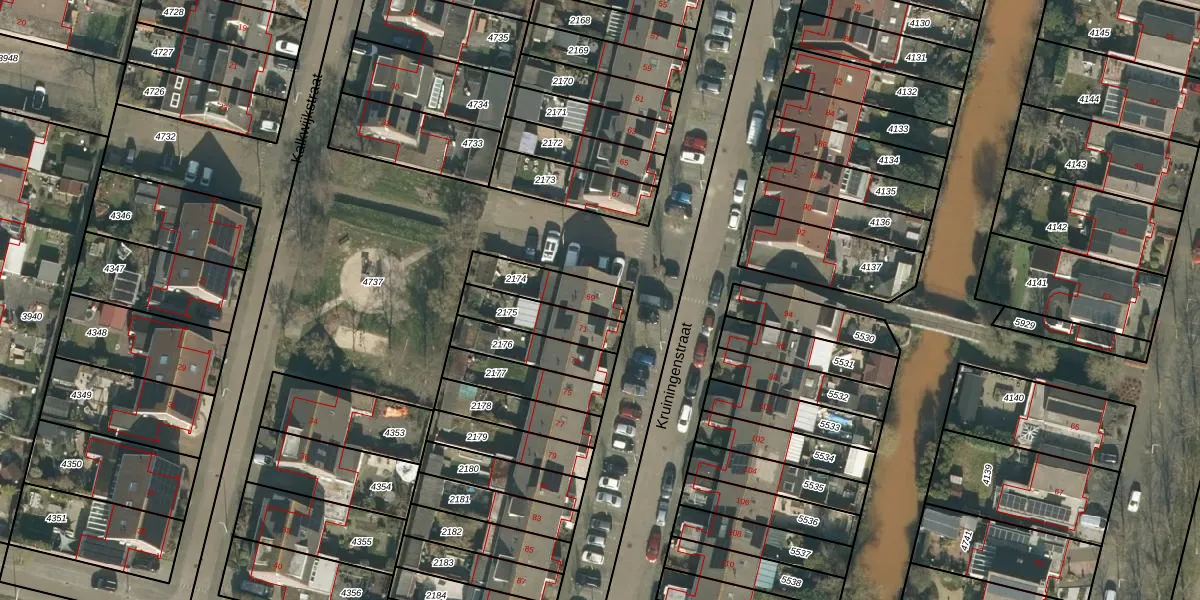 Kruiningenstraat 69 is gelegen op kadastraal perceel TBG01AF2174. Deze kadastrale aanduiding is uniek en wordt gebruikt door het Kadaster om eigendomsrechten en andere zakelijke rechten vast te leggen. Het perceel maakt onderdeel uit van de kadastrale gemeente Tilburg.