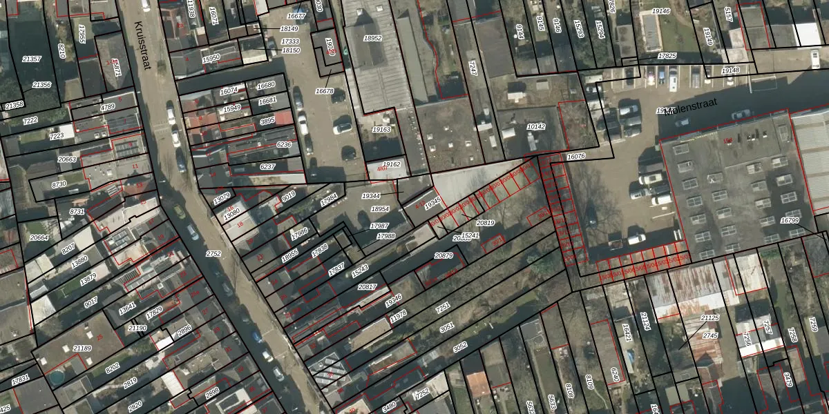Het perceel waarop Kruisstraat 4-12 staat heeft een oppervlakte van 173 m². Dit is een middelgroot perceel. De perceeloppervlakte wordt geregistreerd door het Kadaster. Gedetailleerde informatie over de maten van dit perceel kunt u vinden in het rapport Kadastrale kaart met maatvoering van Kruisstraat 4-12.