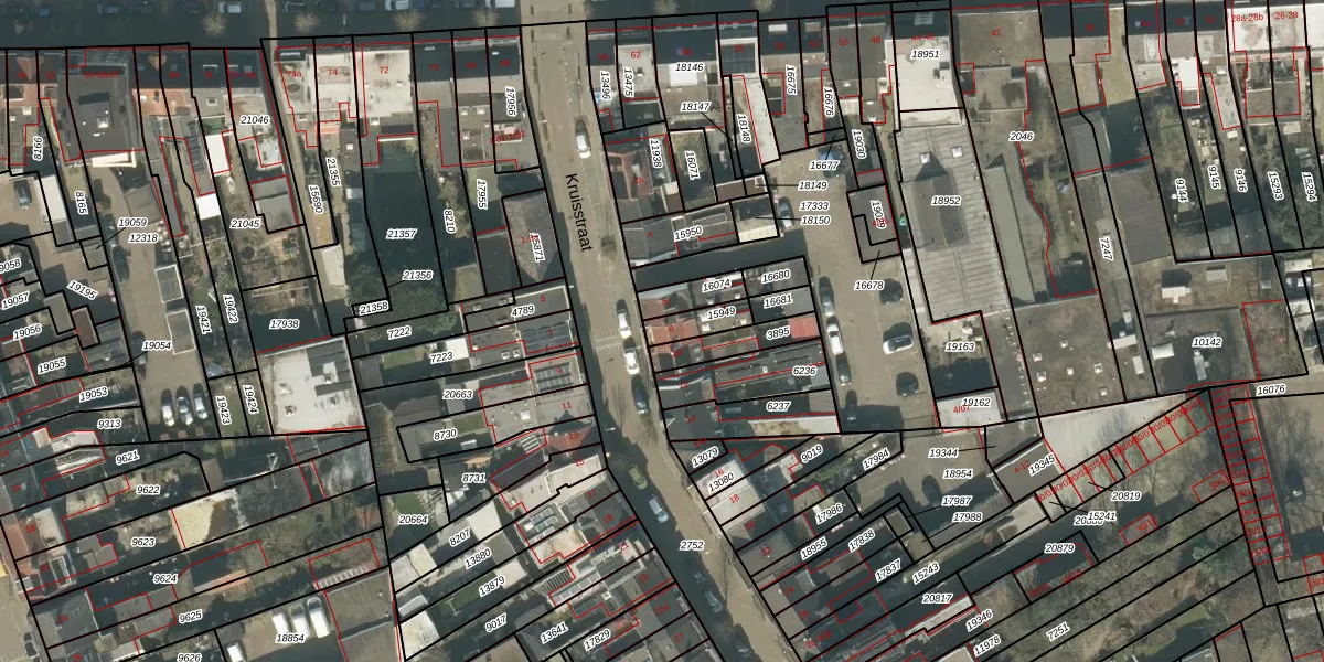 Het perceel waarop Kruisstraat 8 staat heeft een oppervlakte van 66 m². Dit is een klein perceel. De perceeloppervlakte wordt geregistreerd door het Kadaster. Gedetailleerde informatie over de maten van dit perceel kunt u vinden in het rapport Kadastrale kaart met maatvoering van Kruisstraat 8.