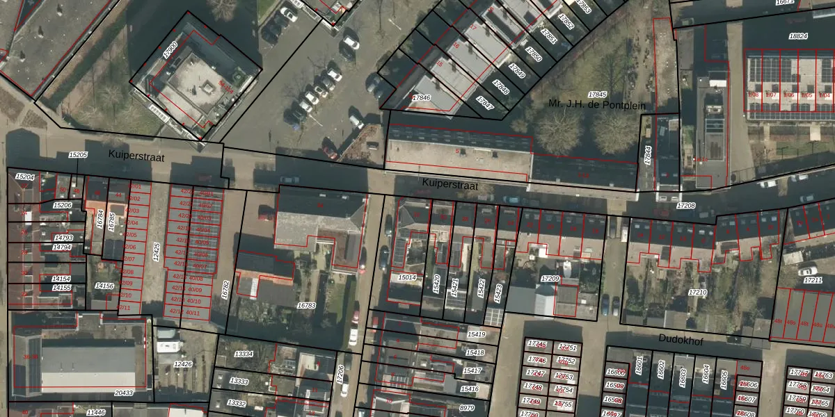 Kuiperstraat 32 is gelegen op kadastraal perceel TBG01N15014. Deze kadastrale aanduiding is uniek en wordt gebruikt door het Kadaster om eigendomsrechten en andere zakelijke rechten vast te leggen. Het perceel maakt onderdeel uit van de kadastrale gemeente Tilburg.