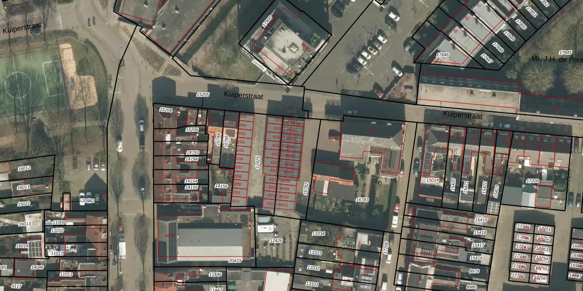 Het perceel waarop Kuiperstraat 40-04 staat heeft een oppervlakte van 421 m². Dit is een groot perceel. De perceeloppervlakte wordt geregistreerd door het Kadaster. Gedetailleerde informatie over de maten van dit perceel kunt u vinden in het rapport Kadastrale kaart met maatvoering van Kuiperstraat 40-04.