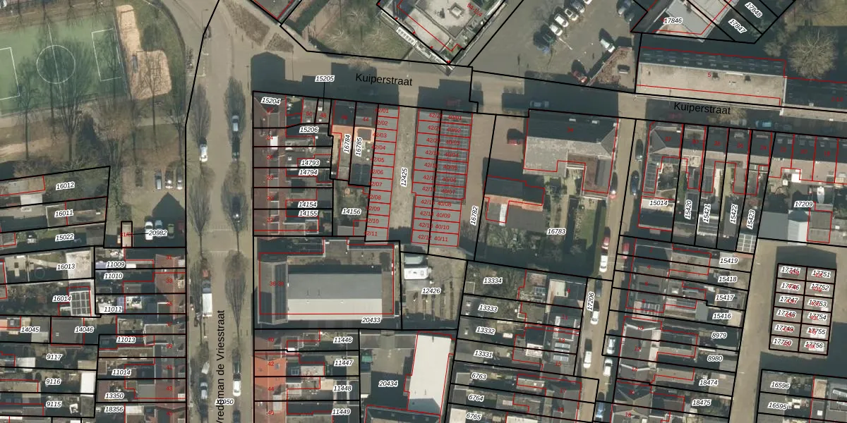 Het perceel waarop Kuiperstraat 42-14 staat heeft een oppervlakte van 499 m². Dit is een groot perceel. De perceeloppervlakte wordt geregistreerd door het Kadaster. Gedetailleerde informatie over de maten van dit perceel kunt u vinden in het rapport Kadastrale kaart met maatvoering van Kuiperstraat 42-14.