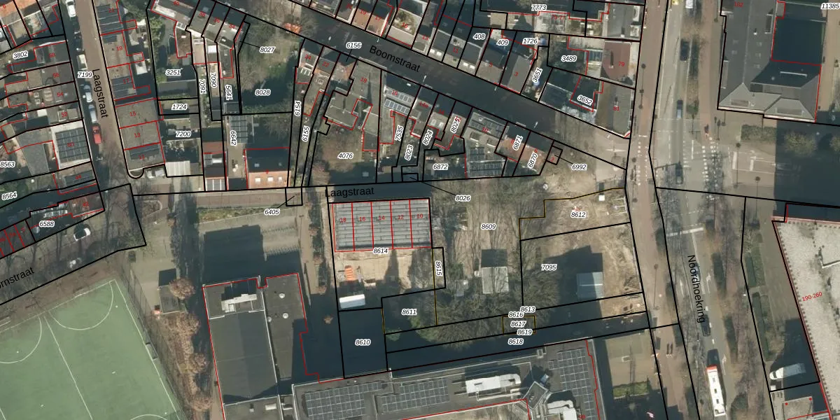 Laagstraat 10 is gelegen op kadastraal perceel TBG01P8614. Deze kadastrale aanduiding is uniek en wordt gebruikt door het Kadaster om eigendomsrechten en andere zakelijke rechten vast te leggen. Het perceel maakt onderdeel uit van de kadastrale gemeente Tilburg.