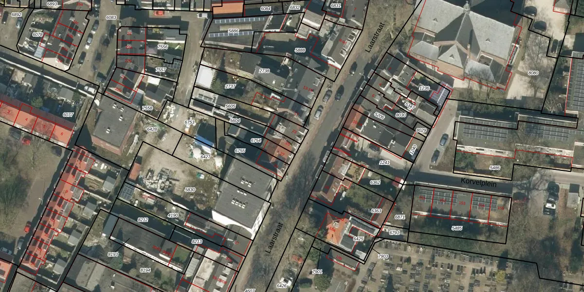 Laarstraat 25 is gelegen op kadastraal perceel TBG01Q5604. Deze kadastrale aanduiding is uniek en wordt gebruikt door het Kadaster om eigendomsrechten en andere zakelijke rechten vast te leggen. Het perceel maakt onderdeel uit van de kadastrale gemeente Tilburg.
