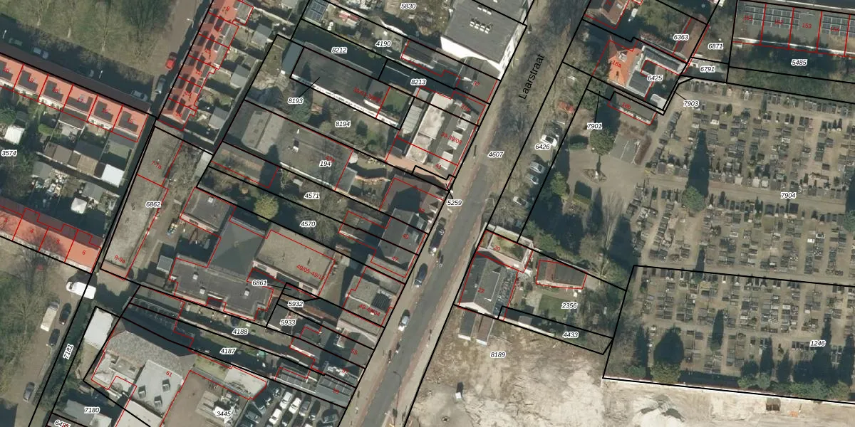 Het perceel waarop Laarstraat 43 staat heeft een oppervlakte van 580 m². Dit is een groot perceel. De perceeloppervlakte wordt geregistreerd door het Kadaster. Gedetailleerde informatie over de maten van dit perceel kunt u vinden in het rapport Kadastrale kaart met maatvoering van Laarstraat 43.