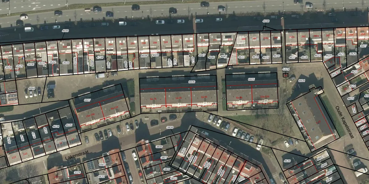 Lakenstraat 1-b is gelegen op kadastraal perceel TBG01O6606. Deze kadastrale aanduiding is uniek en wordt gebruikt door het Kadaster om eigendomsrechten en andere zakelijke rechten vast te leggen. Het perceel maakt onderdeel uit van de kadastrale gemeente Tilburg.