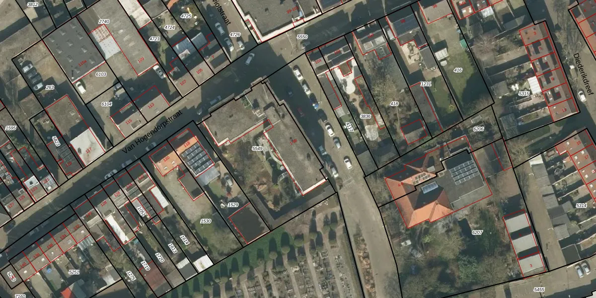 Het perceel waarop Lambert de Wijsstraat 9-a staat heeft een oppervlakte van 1180 m². Dit is een zeer groot perceel. De perceeloppervlakte wordt geregistreerd door het Kadaster. Gedetailleerde informatie over de maten van dit perceel kunt u vinden in het rapport Kadastrale kaart met maatvoering van Lambert de Wijsstraat 9-a.