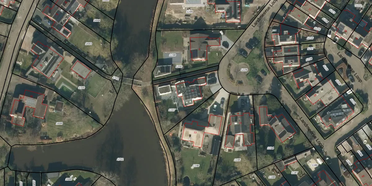 Landmeerse Loop 11 is gelegen op kadastraal perceel TBG01AA1197. Deze kadastrale aanduiding is uniek en wordt gebruikt door het Kadaster om eigendomsrechten en andere zakelijke rechten vast te leggen. Het perceel maakt onderdeel uit van de kadastrale gemeente Tilburg.