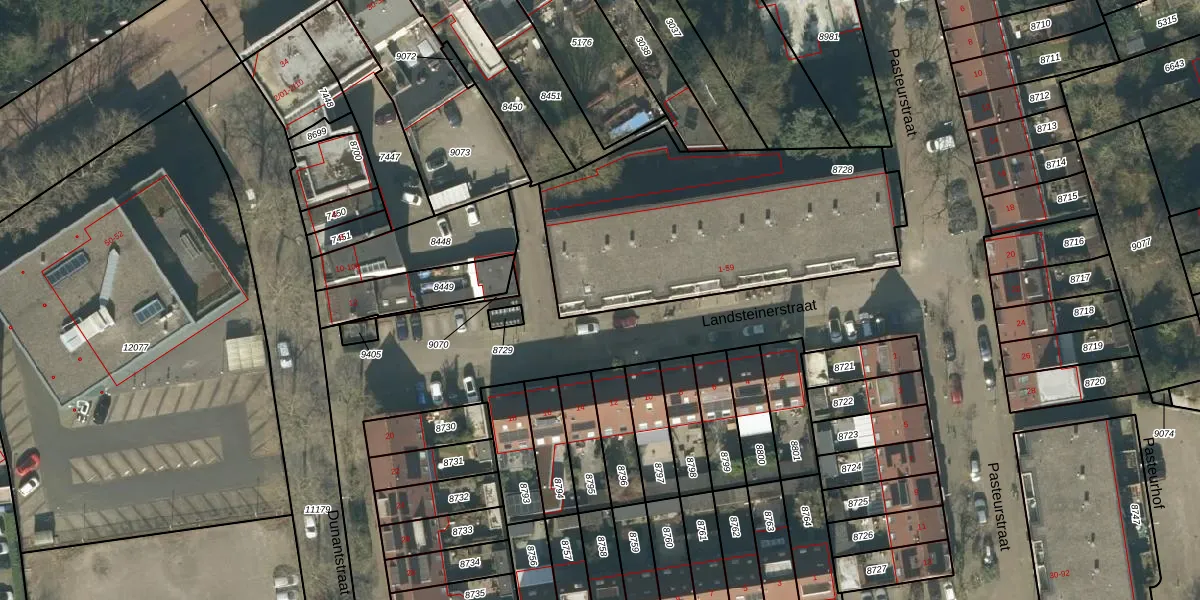 Het perceel waarop Landsteinerstraat 51 staat heeft een oppervlakte van 1380 m². Dit is een zeer groot perceel. De perceeloppervlakte wordt geregistreerd door het Kadaster. Gedetailleerde informatie over de maten van dit perceel kunt u vinden in het rapport Kadastrale kaart met maatvoering van Landsteinerstraat 51.