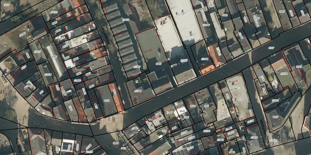 Het perceel waarop Langestraat 180 staat heeft een oppervlakte van 585 m². Dit is een groot perceel. De perceeloppervlakte wordt geregistreerd door het Kadaster. Gedetailleerde informatie over de maten van dit perceel kunt u vinden in het rapport Kadastrale kaart met maatvoering van Langestraat 180.