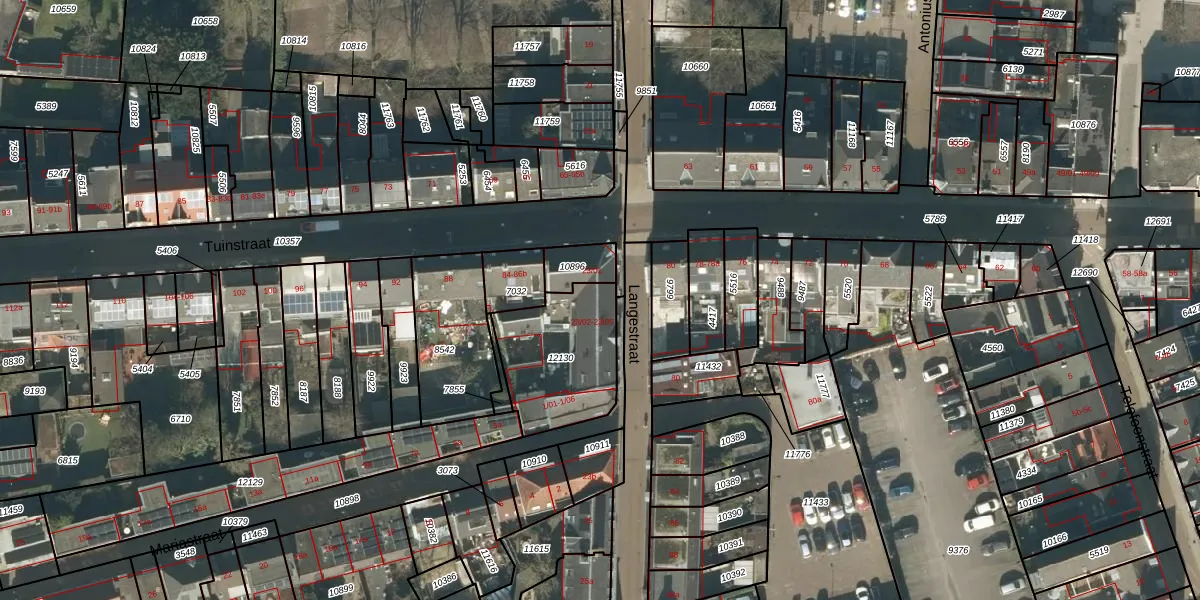 Het perceel waarop Langestraat 23-02 staat heeft een oppervlakte van 417 m². Dit is een groot perceel. De perceeloppervlakte wordt geregistreerd door het Kadaster. Gedetailleerde informatie over de maten van dit perceel kunt u vinden in het rapport Kadastrale kaart met maatvoering van Langestraat 23-02.
