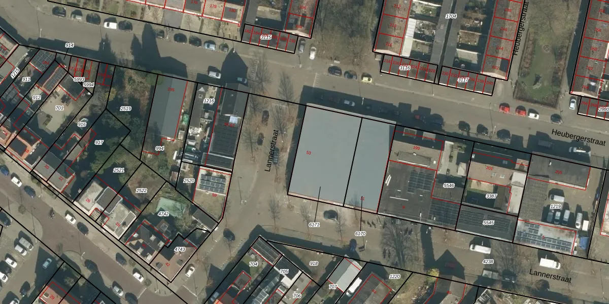 Lannerstraat 53 is gelegen op kadastraal perceel TBG01S6171. Deze kadastrale aanduiding is uniek en wordt gebruikt door het Kadaster om eigendomsrechten en andere zakelijke rechten vast te leggen. Het perceel maakt onderdeel uit van de kadastrale gemeente Tilburg.