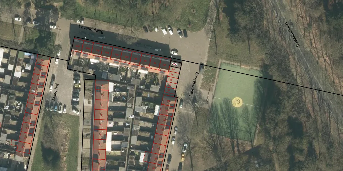 Lavendelweg 84 is gelegen op kadastraal perceel TBG01AD462. Deze kadastrale aanduiding is uniek en wordt gebruikt door het Kadaster om eigendomsrechten en andere zakelijke rechten vast te leggen. Het perceel maakt onderdeel uit van de kadastrale gemeente Tilburg.