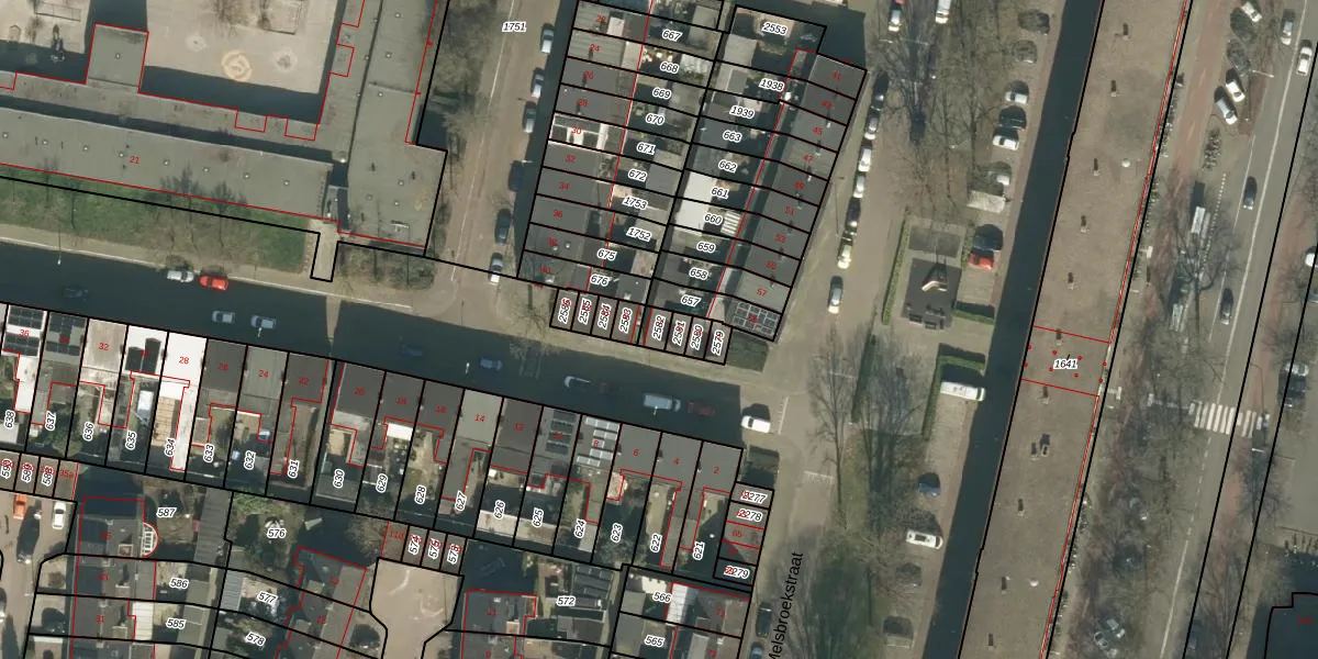 Gebruik de zoekbalk of klik op een perceel voor informatie over de adressen binnen dit perceel.