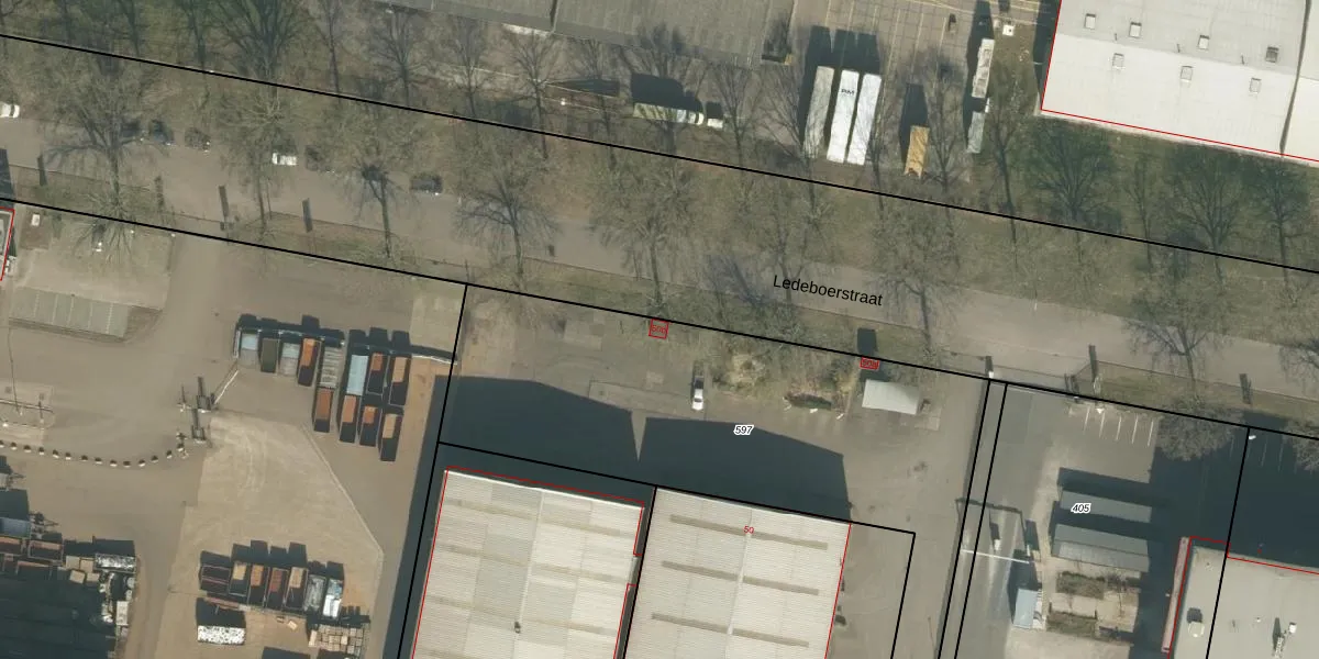 Het perceel waarop Ledeboerstraat 50-b staat heeft een oppervlakte van 2845 m². Dit is een zeer groot perceel. De perceeloppervlakte wordt geregistreerd door het Kadaster. Gedetailleerde informatie over de maten van dit perceel kunt u vinden in het rapport Kadastrale kaart met maatvoering van Ledeboerstraat 50-b.