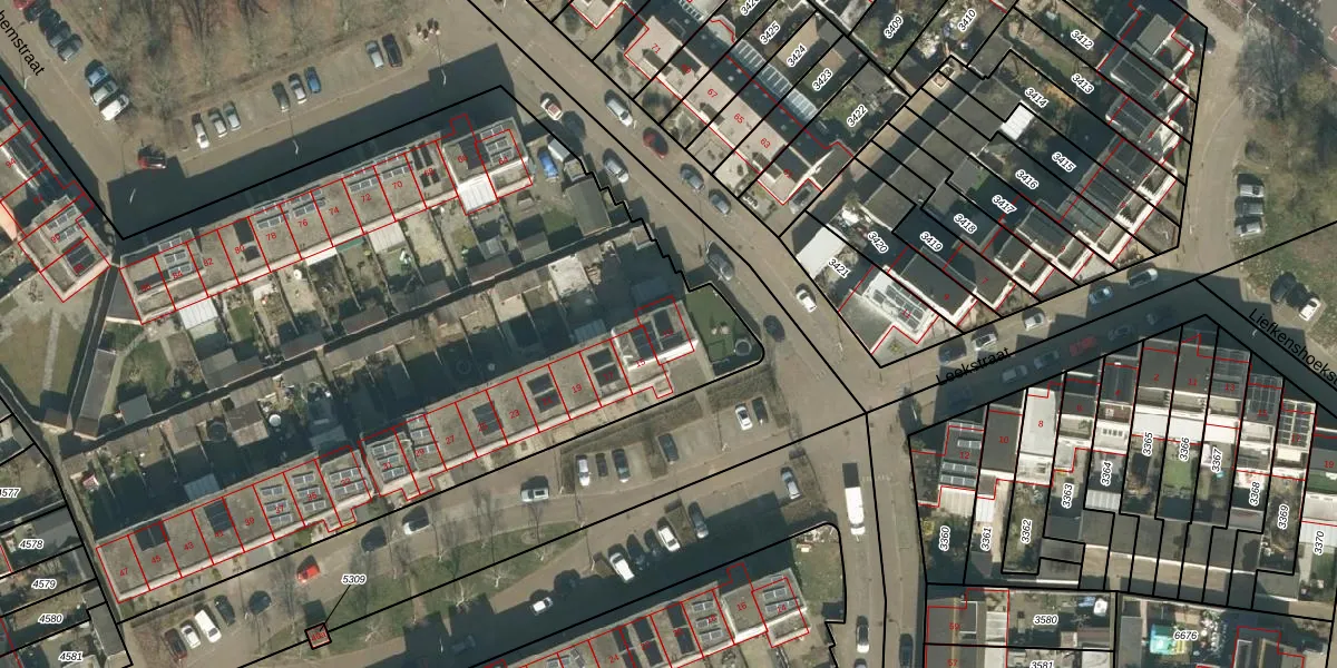 Leekstraat 13 is gelegen op kadastraal perceel TBG01AF4556. Deze kadastrale aanduiding is uniek en wordt gebruikt door het Kadaster om eigendomsrechten en andere zakelijke rechten vast te leggen. Het perceel maakt onderdeel uit van de kadastrale gemeente Tilburg.