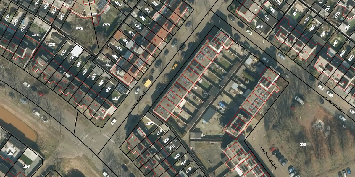 Het perceel waarop Lemmerstraat 34 staat heeft een oppervlakte van 9825 m². Dit is een zeer groot perceel. De perceeloppervlakte wordt geregistreerd door het Kadaster. Gedetailleerde informatie over de maten van dit perceel kunt u vinden in het rapport Kadastrale kaart met maatvoering van Lemmerstraat 34.