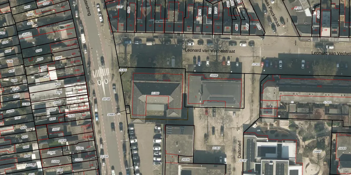 Het perceel waarop Leonard van Vechelstraat 4-07 staat heeft een oppervlakte van 1005 m². Dit is een zeer groot perceel. De perceeloppervlakte wordt geregistreerd door het Kadaster. Gedetailleerde informatie over de maten van dit perceel kunt u vinden in het rapport Kadastrale kaart met maatvoering van Leonard van Vechelstraat 4-07.