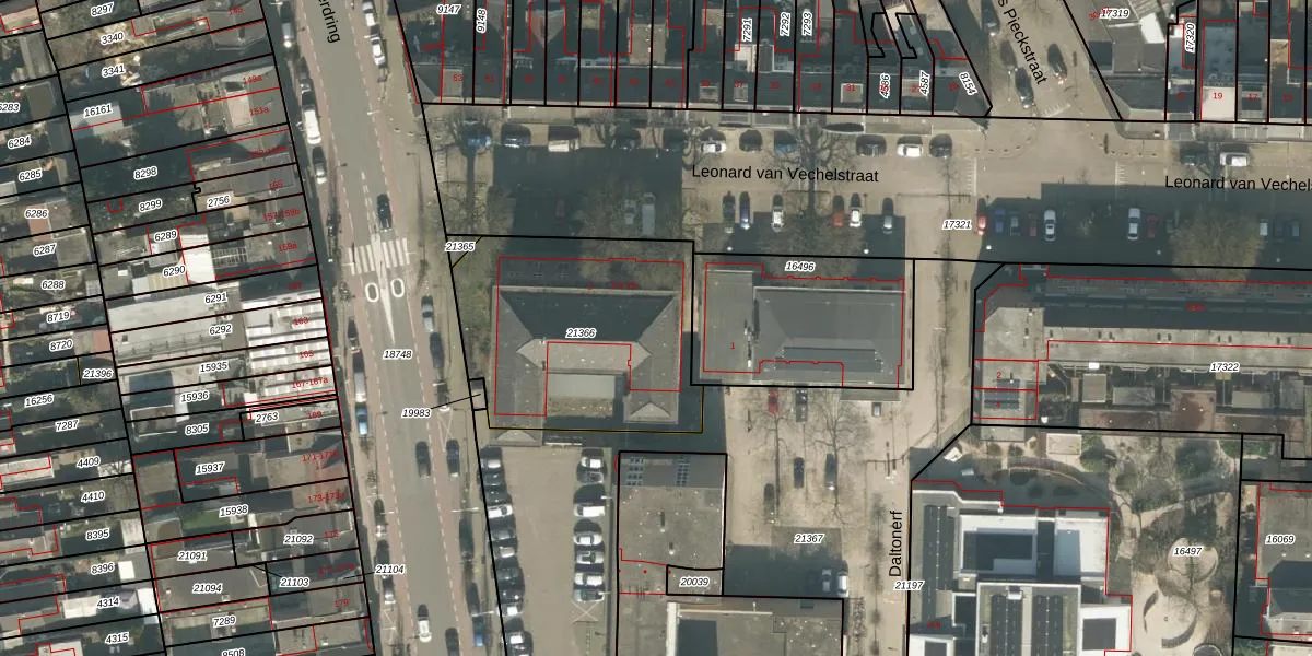 Leonard van Vechelstraat 4-13 is gelegen op kadastraal perceel TBG01N21366. Deze kadastrale aanduiding is uniek en wordt gebruikt door het Kadaster om eigendomsrechten en andere zakelijke rechten vast te leggen. Het perceel maakt onderdeel uit van de kadastrale gemeente Tilburg.