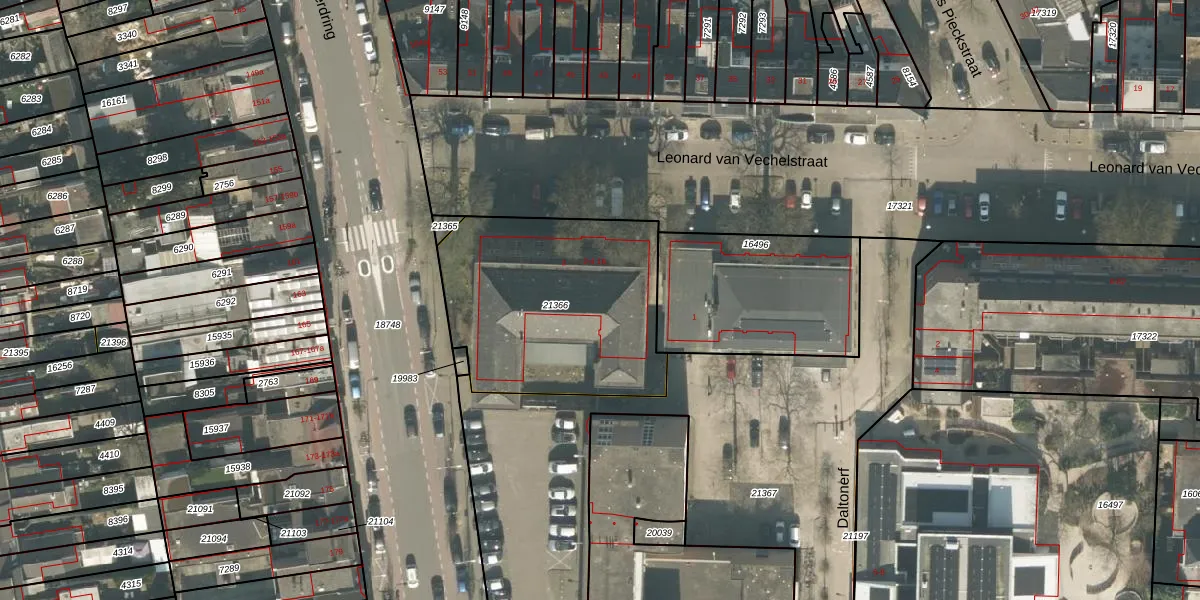 Leonard van Vechelstraat 4-14 is gelegen op kadastraal perceel TBG01N21366. Deze kadastrale aanduiding is uniek en wordt gebruikt door het Kadaster om eigendomsrechten en andere zakelijke rechten vast te leggen. Het perceel maakt onderdeel uit van de kadastrale gemeente Tilburg.