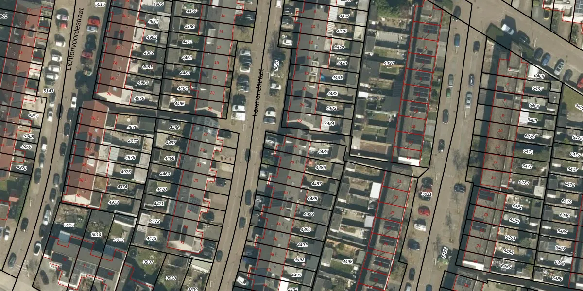 Het perceel waarop Lexmondstraat 24 staat heeft een oppervlakte van 165 m². Dit is een middelgroot perceel. De perceeloppervlakte wordt geregistreerd door het Kadaster. Gedetailleerde informatie over de maten van dit perceel kunt u vinden in het rapport Kadastrale kaart met maatvoering van Lexmondstraat 24.