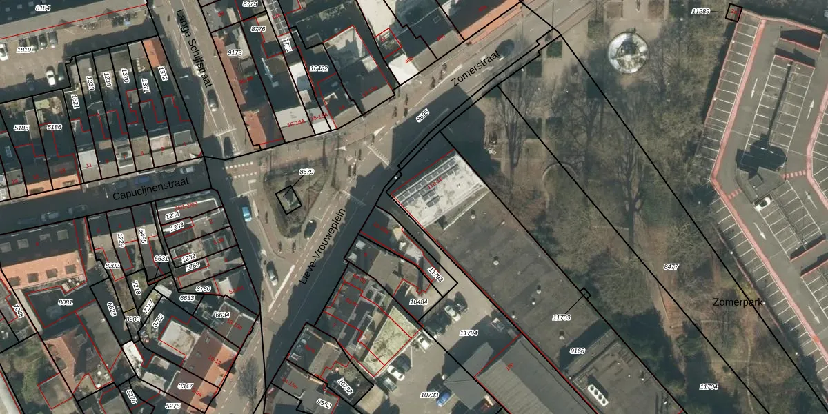 Lieve-Vrouweplein 11-a is gelegen op kadastraal perceel TBG01M9166. Deze kadastrale aanduiding is uniek en wordt gebruikt door het Kadaster om eigendomsrechten en andere zakelijke rechten vast te leggen. Het perceel maakt onderdeel uit van de kadastrale gemeente Tilburg.