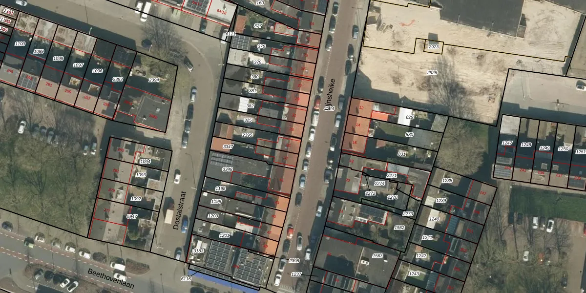 Het adres is gelegen op perceel 2395 in de sectie S en de kadastrale gemeente Tilburg. De kadastrale aanduiding is aldus TBG01-S-2395. Het perceel is kleiner dan gemiddeld in Tilburg. Het perceel is 159 m² groot, terwijl het gemiddelde ligt op 1264,33 m². De grootste perceeloppervlakte in de kadastrale gemeente is 87,4 ha. De kleinste oppervlakte bedraagt 0 m². Er zijn geen andere adressen aanwezig op het perceel. De laatste wijziging in het de Basisregistratie Kadaster (BRK) was op 20-03-2006.