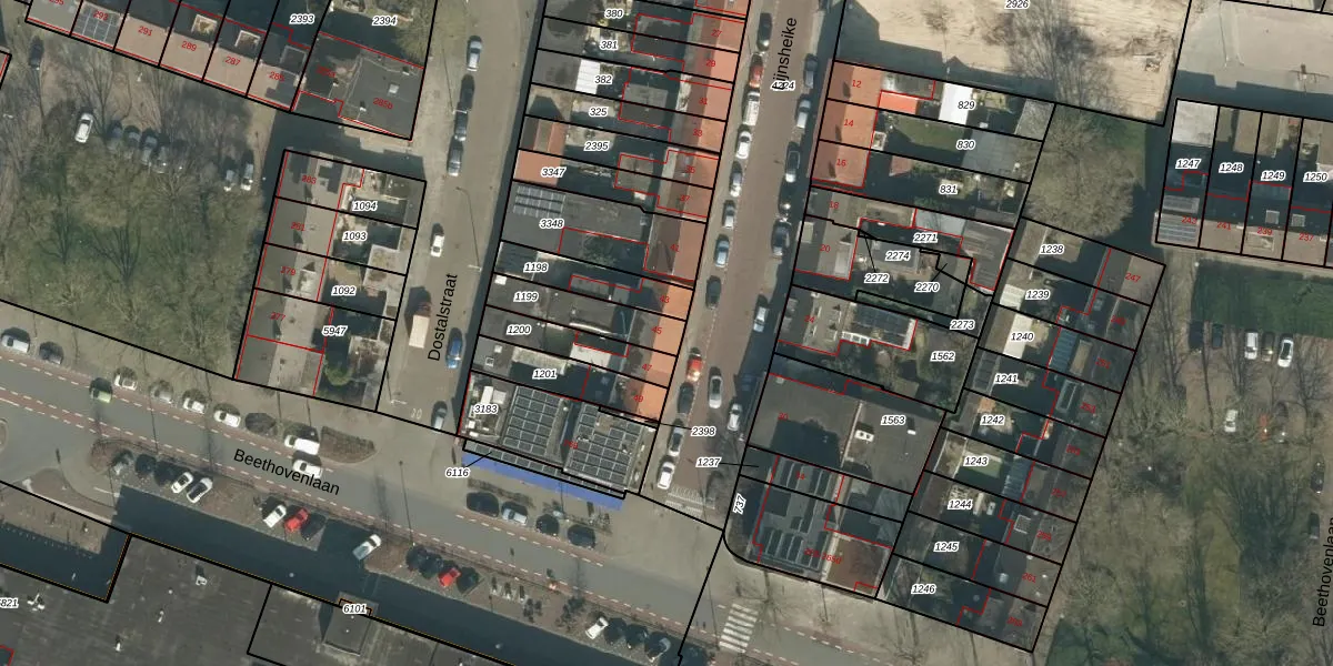Het adres is gelegen op perceel 1199 in de sectie S en de kadastrale gemeente Tilburg. De kadastrale aanduiding is aldus TBG01-S-1199. Het perceel is kleiner dan gemiddeld in Tilburg. Het perceel is 152 m² groot, terwijl het gemiddelde ligt op 1264,33 m². De grootste perceeloppervlakte in de kadastrale gemeente is 87,4 ha. De kleinste oppervlakte bedraagt 0 m². Er zijn geen andere adressen aanwezig op het perceel. In de Basisregistratie Kadaster (BRK) werden de grenzen van het perceel geregistreerd op 20-03-2006.