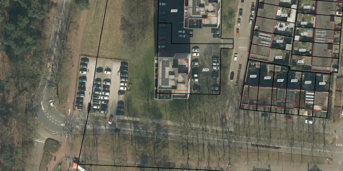 Het perceel waarop Linatestraat 95 staat heeft een oppervlakte van 1197 m². Dit is een zeer groot perceel. De perceeloppervlakte wordt geregistreerd door het Kadaster. Gedetailleerde informatie over de maten van dit perceel kunt u vinden in het rapport Kadastrale kaart met maatvoering van Linatestraat 95.