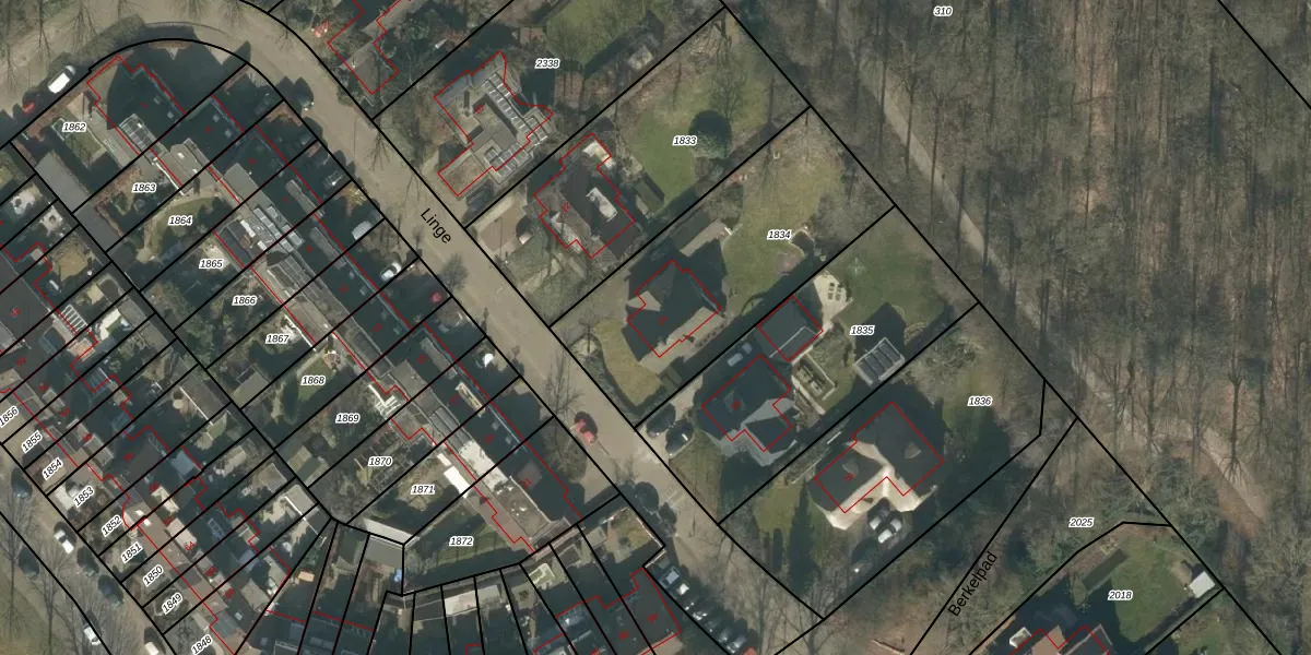 Het perceel waarop Linge 14 staat heeft een oppervlakte van 1052 m². Dit is een zeer groot perceel. De perceeloppervlakte wordt geregistreerd door het Kadaster. Gedetailleerde informatie over de maten van dit perceel kunt u vinden in het rapport Kadastrale kaart met maatvoering van Linge 14.