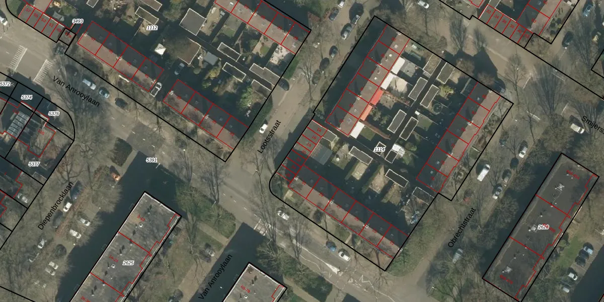 Het perceel waarop Lootsstraat 20 staat heeft een oppervlakte van 3556 m². Dit is een zeer groot perceel. De perceeloppervlakte wordt geregistreerd door het Kadaster. Gedetailleerde informatie over de maten van dit perceel kunt u vinden in het rapport Kadastrale kaart met maatvoering van Lootsstraat 20.