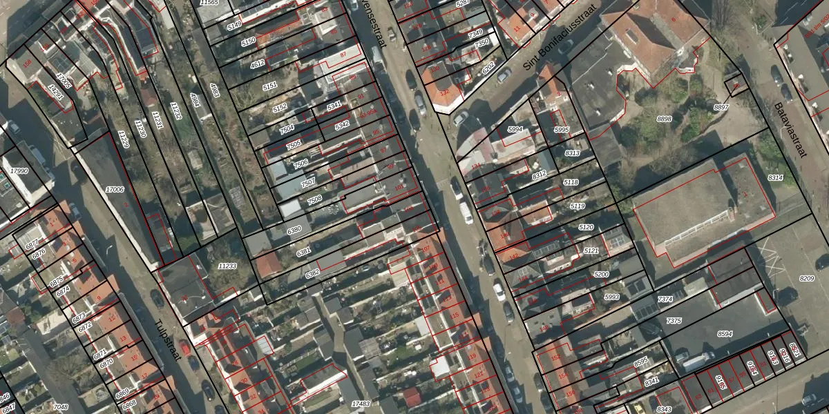 Het adres is gelegen op perceel 6381 in de sectie N en de kadastrale gemeente Tilburg. De kadastrale aanduiding is aldus TBG01-N-6381. Het perceel is kleiner dan gemiddeld in Tilburg. Het perceel is 251 m² groot, terwijl het gemiddelde ligt op 1264,33 m². Het kleinste perceel in de kadastrale gemeente is 0 m² groot. De grootste perceeloppervlakte is 87,4 ha. Er zijn geen andere adressen aanwezig op het perceel. In de Basisregistratie Kadaster (BRK) werden de grenzen van het perceel geregistreerd op 23-02-2006.