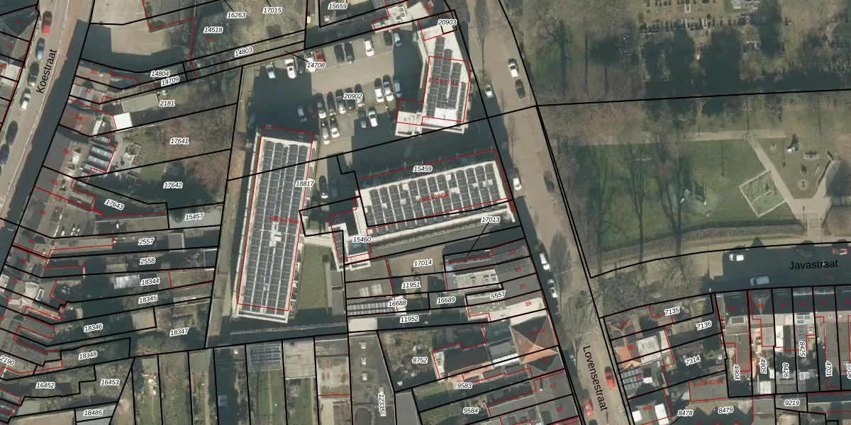 Het perceel waarop Lovensestraat 19-47 staat heeft een oppervlakte van 676 m². Dit is een groot perceel. De perceeloppervlakte wordt geregistreerd door het Kadaster. Gedetailleerde informatie over de maten van dit perceel kunt u vinden in het rapport Kadastrale kaart met maatvoering van Lovensestraat 19-47.