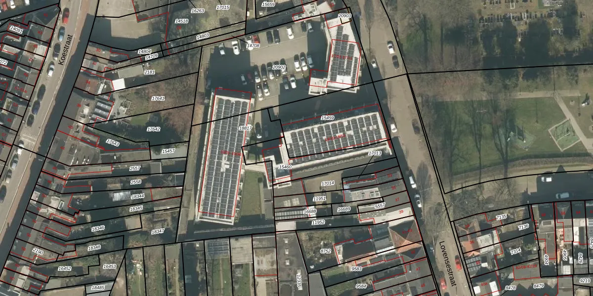 Lovensestraat 19-19 is gelegen op kadastraal perceel TBG01N15459. Deze kadastrale aanduiding is uniek en wordt gebruikt door het Kadaster om eigendomsrechten en andere zakelijke rechten vast te leggen. Het perceel maakt onderdeel uit van de kadastrale gemeente Tilburg.