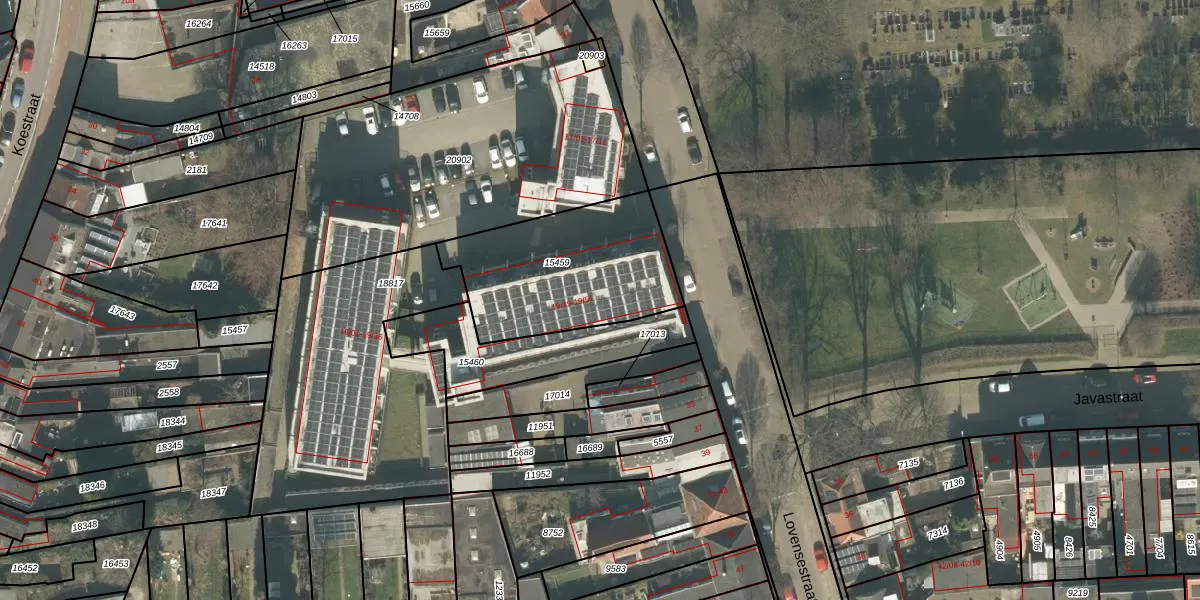 Het perceel waarop Lovensestraat 19-24 staat heeft een oppervlakte van 676 m². Dit is een groot perceel. De perceeloppervlakte wordt geregistreerd door het Kadaster. Gedetailleerde informatie over de maten van dit perceel kunt u vinden in het rapport Kadastrale kaart met maatvoering van Lovensestraat 19-24.