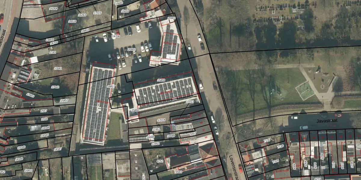 Het perceel waarop Lovensestraat 19-25 staat heeft een oppervlakte van 676 m². Dit is een groot perceel. De perceeloppervlakte wordt geregistreerd door het Kadaster. Gedetailleerde informatie over de maten van dit perceel kunt u vinden in het rapport Kadastrale kaart met maatvoering van Lovensestraat 19-25.