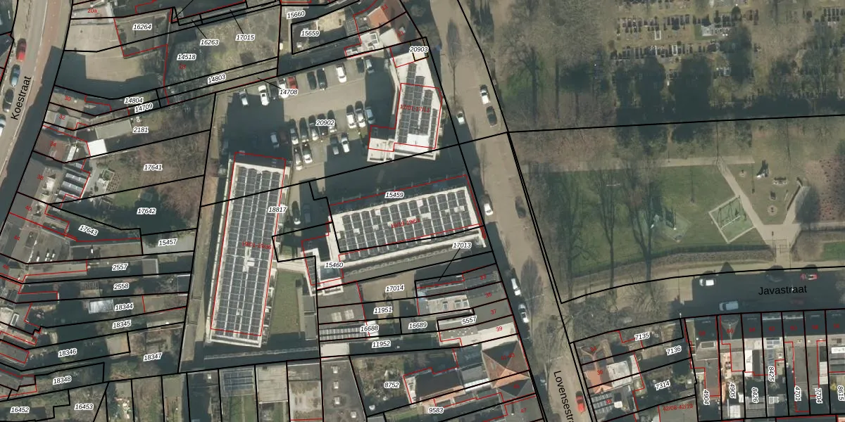 Het perceel waarop Lovensestraat 19-41 staat heeft een oppervlakte van 676 m². Dit is een groot perceel. De perceeloppervlakte wordt geregistreerd door het Kadaster. Gedetailleerde informatie over de maten van dit perceel kunt u vinden in het rapport Kadastrale kaart met maatvoering van Lovensestraat 19-41.