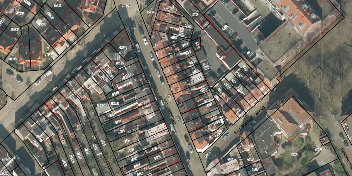 Het perceel waarop Lovensestraat 96 staat heeft een oppervlakte van 112 m². Dit is een middelgroot perceel. De perceeloppervlakte wordt geregistreerd door het Kadaster. Gedetailleerde informatie over de maten van dit perceel kunt u vinden in het rapport Kadastrale kaart met maatvoering van Lovensestraat 96.