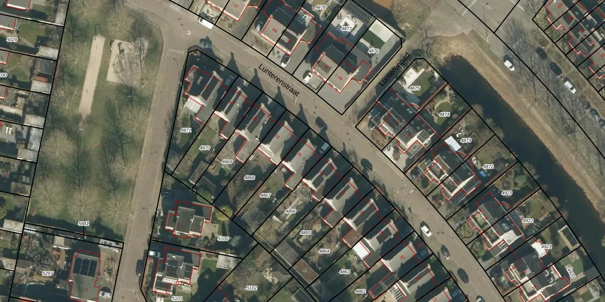Lunterenstraat 26 is gelegen op kadastraal perceel TBG01AF4867. Deze kadastrale aanduiding is uniek en wordt gebruikt door het Kadaster om eigendomsrechten en andere zakelijke rechten vast te leggen. Het perceel maakt onderdeel uit van de kadastrale gemeente Tilburg.